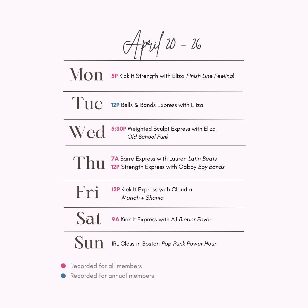 Add each class to your Google calendar by loading this page on a desktop!